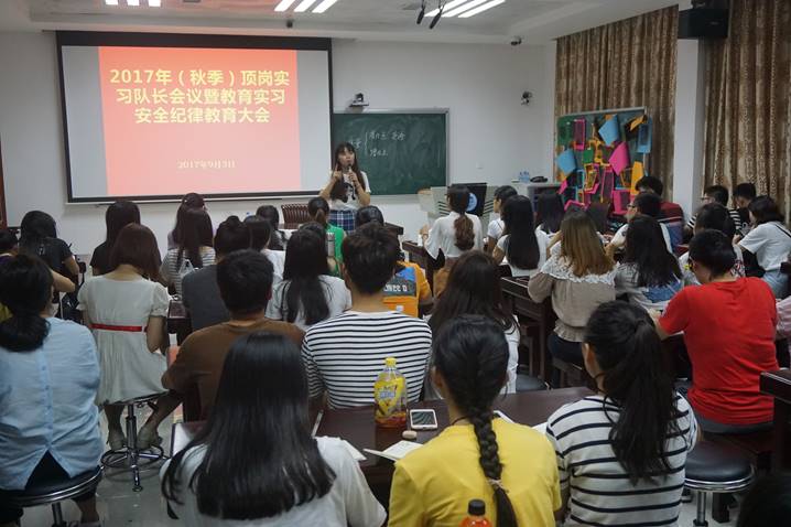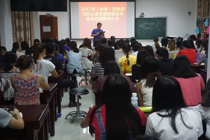 为保证教育实习质量,提高师范生的公司产品能力,暑假期间304永利集团登录入口对顶岗实习生进行了为期六天的岗前培训,邀请省内中小学一线教师为公司各专业师范生开设名师课堂,帮助同学们掌握有效的教学和员工管理技能,为顺利完成实习工作奠定基础。出发前,除了各带队老师分别组织员工开展实习动员大会之外,304永利集团登录入口组织实习队长进行安全纪律教育学习,强调了队长职责和责任,以保障实习工作的顺利进行。
