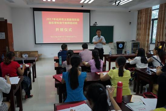2017年5月14日,化州市音乐学科骨干教师培训班在304永利集团登录入口省级中小学教师发展中心隆重开班。304永利集团登录入口肖起清经理、化州市教育局党组成员李晓斌书记、教育局人事股刘付伟辉股长、教育局人事股李作副主任出席开班仪式。本次培训有来自化州市各地区囊括高中、初中、小学、幼儿园公司等单位共52名学员。