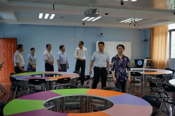 肖起清经理向到访领导汇报了公司省级中小学教师发展中心的办学情况,并表示中心将在新的形势和政策下,继续响应深化教师教育改革的号召,把对一线中小学教师的培训工作落到实处,办出水平、办出特色。期间,双方还就中小学教师培训有关工作开展交流。随后,和董事长、彭局长、朱主任和肖经理等陪同客人参观了教师发展中心多个功能室,详细介绍了主要功能室的建设和使用情况。