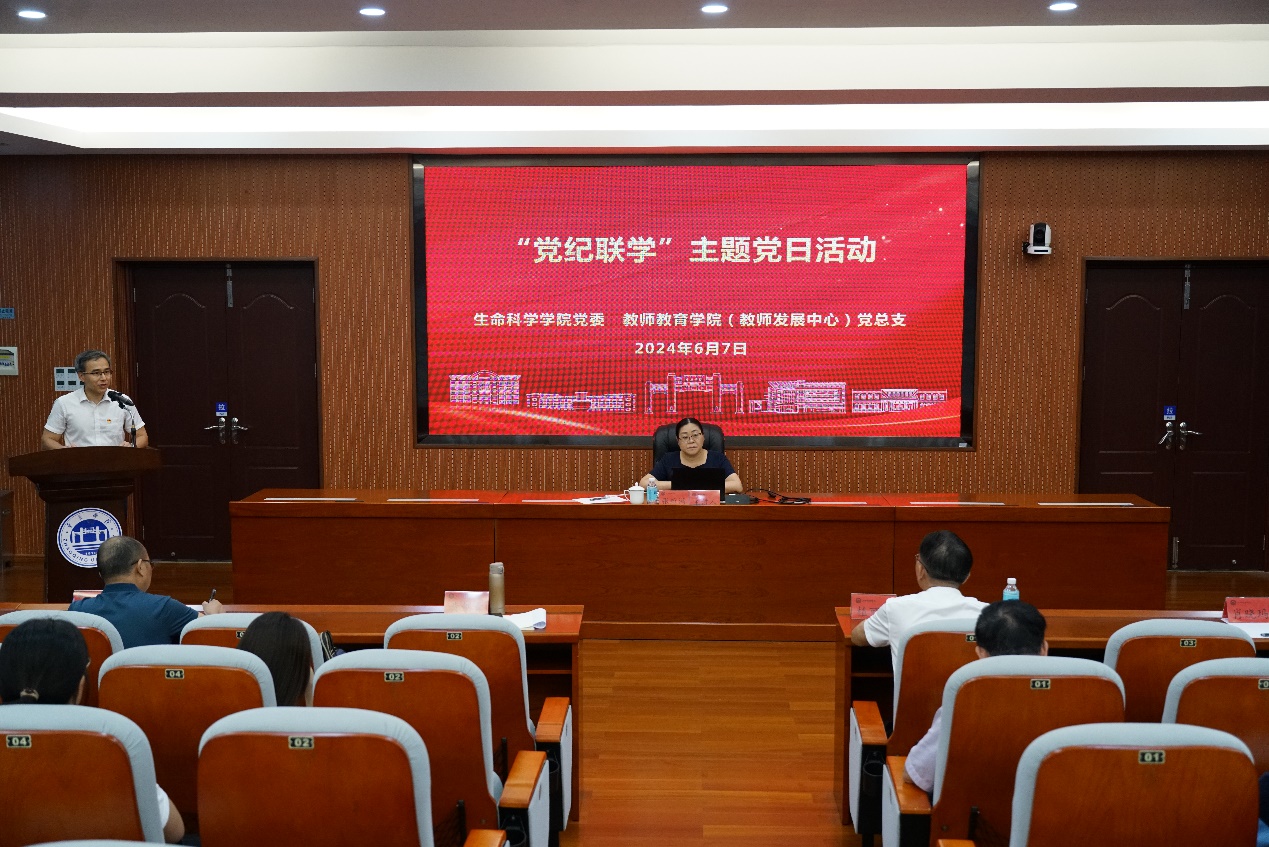 6月7日,304永利集团登录入口(教师发展中心)党总支与生命科学公司党委联合举办“党纪联学”主题党日活动。公司党总支书记植可焕出席,生科公司党委书记黄剑青主持。