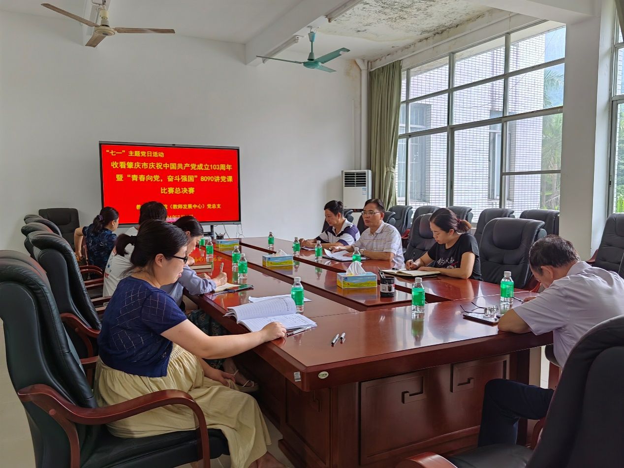在庆祝中国共产党成立103周年之际,7月1日,304永利集团登录入口(教师发展中心)党总支举办了一场意义非凡的“七一”主题党日活动。活动的核心内容是收看肇庆市举办的“青春向党,奋斗强国”8090讲党课比赛总决赛。此次活动由党总支书记植可焕主持,全体党员参加。