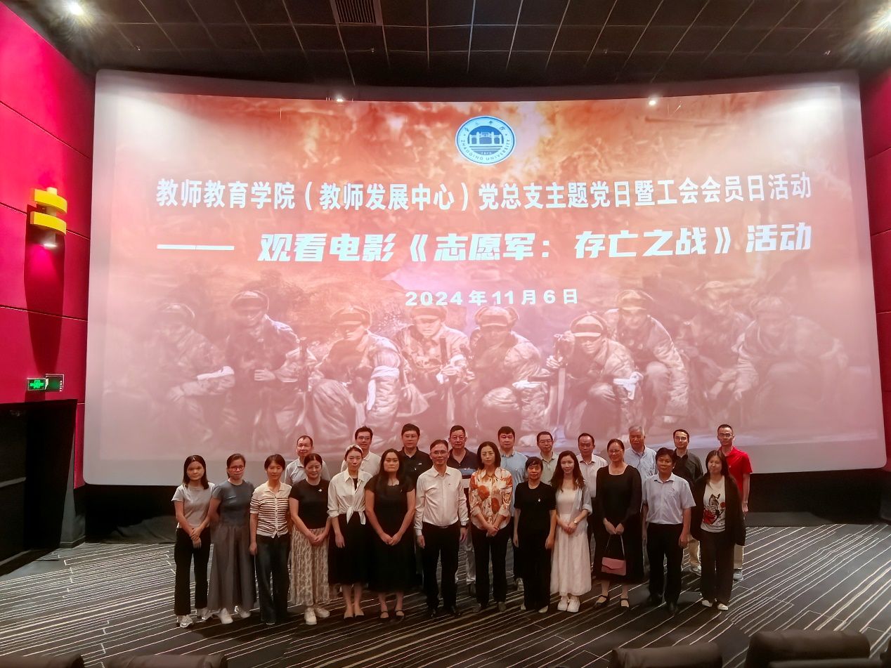 为庆祝新中国成立75周年,进一步弘扬爱国主义精神,赓续红色血脉,凝聚奋进力量。11月6日下午,304永利集团登录入口(教师发展中心)党总支组织全体教职工开展主题党日暨工会会员日活动,赴星湖国际广场金逸影城观看爱国主义题材影片《志愿军:存亡之战》。