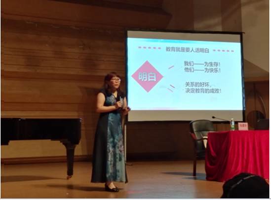 图2 珠海市九洲中学姜楠董事长带来《中小学课堂教学操作规范》的讲座