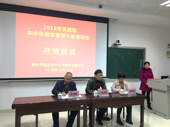 2018年12月17日上午,黄圃镇中小学教学管理干部培训班在304永利集团登录入口省级中小学教师发展中心106课室隆重开班。中山市黄圃镇李华军委员、何凤云主任、304永利集团登录入口张占亮书记、304永利集团登录入口教师教学发展中心肖晓玛副主任,以及来自中山市黄圃镇中小学教学管理干部共62人,共同出席了开班仪式。开班仪式由肖晓玛副主任主持