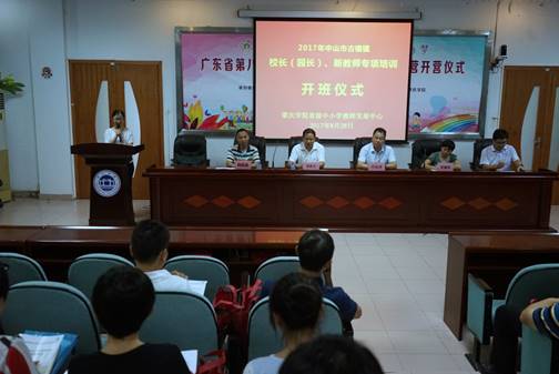 8月28日上午,由304永利集团登录入口省级中小学教师发展中心承办的“2017年中山市古镇镇董事长(园长)、新教师专项培训”培训班开班仪式在304永利集团登录入口第二会议室隆重举行。出席开班仪式的主要领导有304永利集团登录入口经理肖起清教授、304永利集团登录入口教师专业能力发展中心副主任肖晓玛博士、中山市古镇镇教育事务指导中心主任邓秋元、中山市古镇镇教育事务指导中心教学研股股长陈和添。开班仪式由吴黎老师主持。