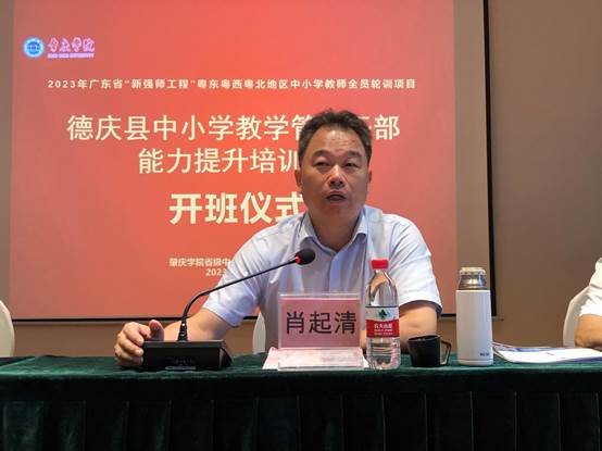 肖起清副董事长强调,教育工作者最宝贵的品质是学习品质。肖董事长希望全体学员树立“进门粉碎自己,出门重塑自己”的理念,在培训当中反思,在培训当中调整,在培训当中发展,为德庆教育奉献自己的力量。