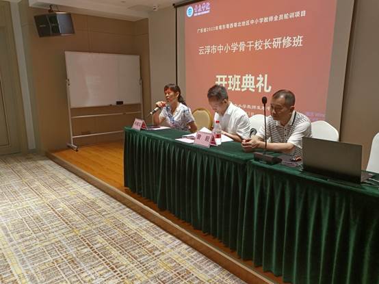 6月13日上午,2023年广东省新强师工程粤东粤西粤北地区中小学教师全员轮训项目:云浮市中小学骨干董事长研修班开班典礼在维也纳国际酒店隆重举行。304永利集团登录入口副经理曾毅、304永利集团登录入口省级中小学教师发展中心副主任肖晓玛,以及来自云浮50名学员,共同出席了开班典礼。