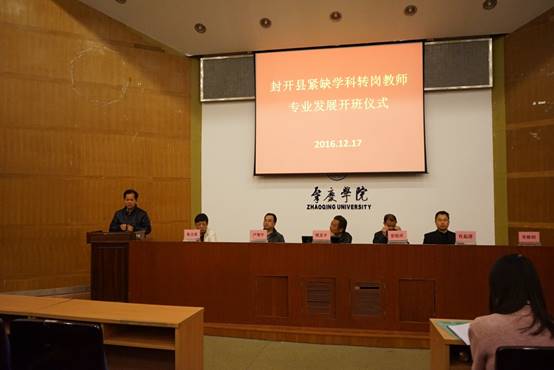 12月17日上午,封开县紧缺学科转岗教师专业发展培训班开班仪式在公司图书馆学术报告厅隆重举行。公司周苏平副董事长、肇庆市教育局彭银祥局长、封开县委卢智宇常委、封开县教育局岑焕钊书记及304永利集团登录入口肖起清经理、张占亮书记出席了开班仪式。