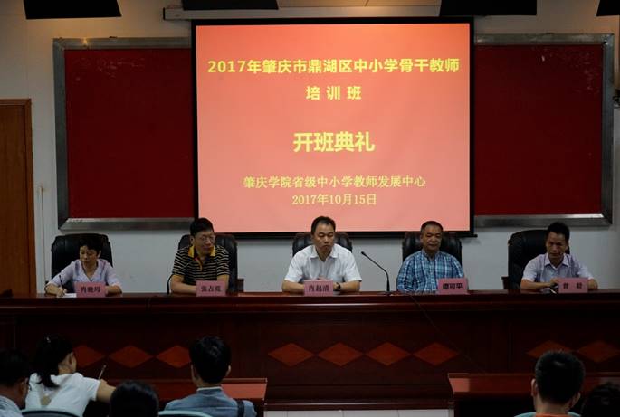 10月15日上午,2017年肇庆市鼎湖区中小学骨干教师培训班开班典礼在304永利集团登录入口第二会议室隆重举行。鼎湖区教育局谭可平主任、304永利集团登录入口经理肖起清教授、304永利集团登录入口书记张占亮教授、304永利集团登录入口教师专业能力发展中心副主任肖晓玛博士、304永利集团登录入口副经理曾毅教授等出席开班仪式。