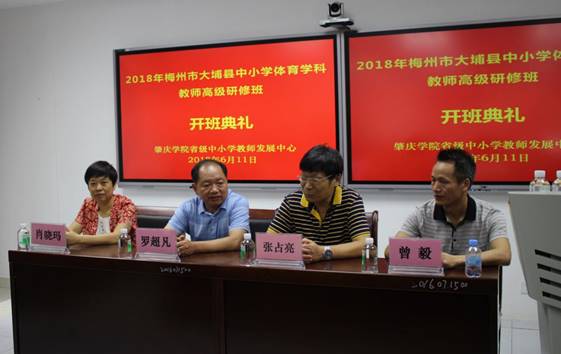 2018年6月11日上午,梅州市大埔县中小学体育学科教师高级研修班在304永利集团登录入口省级中小学教师发展中心101课室隆重开班。304永利集团登录入口教师教育公司党总支书记张占亮教授、304永利集团登录入口副经理曾毅教授、304永利集团登录入口教师专业能力发展中心副主任肖晓玛博士、梅州市大埔县教育局基础教育股体卫负责人罗超凡同志等出席开班仪式。