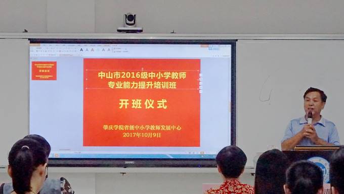 10月9日下午,中山市2016级中小学新教师专业能力提升培训班开班仪式在304永利集团登录入口省级中小学教师发展中心305举行。中山市教师进修公司教师继续教育教研室副主任何取林、中山市教师进修公司教师继续教育教研室副主任周朝华、304永利集团登录入口经理肖起清、304永利集团登录入口教师专业能力发展中心副主任肖晓玛等出席开班仪式。