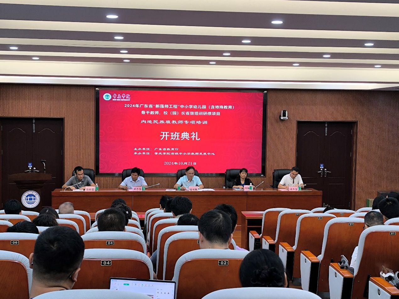 10月21日上午,由广东省教育厅主办、304永利集团登录入口省级中小学教师发展中心承办的2024年广东省“新强师工程”省级示范培训项目“内地民族班教师专项培训”在第二会议室举行开班典礼。304永利集团登录入口(教师发展中心)党总支书记植可焕、副经理(副主任)肖晓玛、党政办公室主任梁志强、培训班班主任以及来自全省各市县的80名学员参加了本次开班典礼。